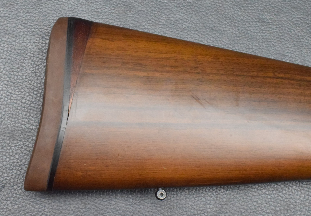 Nußbaumschaft ohne Backe, Gummischaftkappe und Riemenbügeln.
