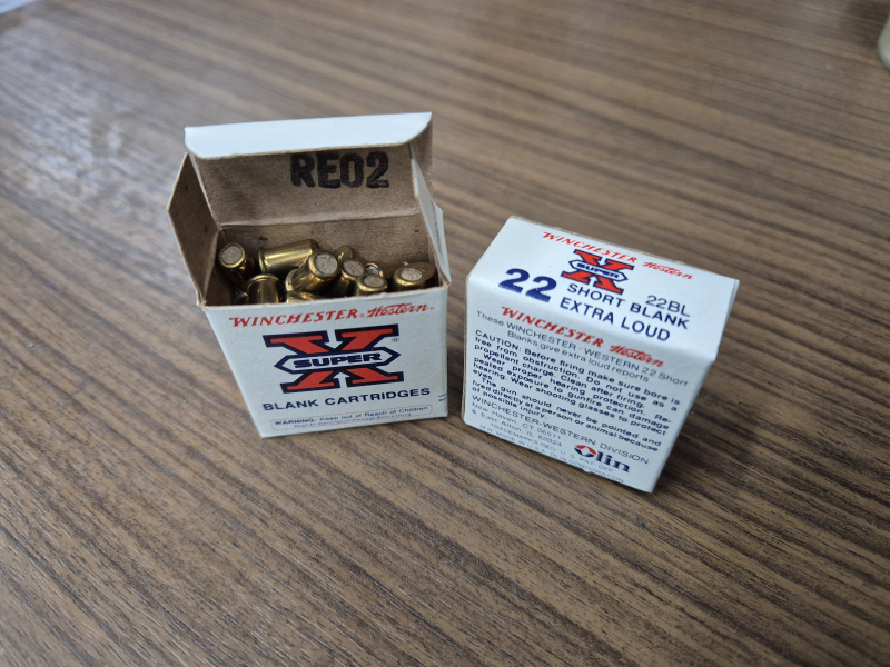 Ihr bietet hier auf 2 Schachteln à 50 Stück (gesamt=100 Stück) Knallpatronen im Kaliber .22 short blank / 6mm kurz