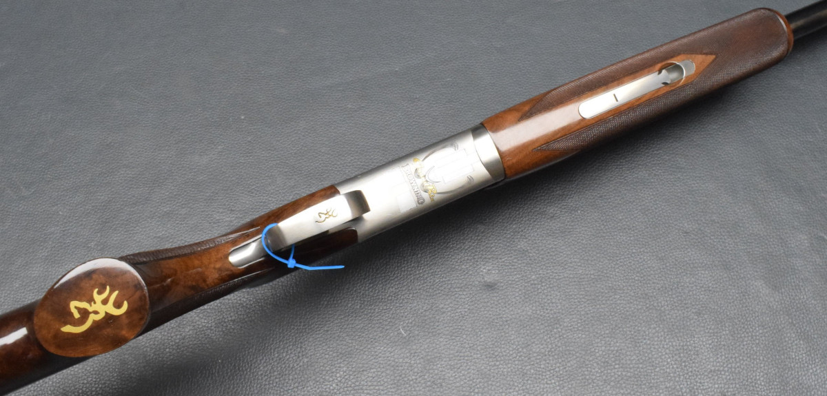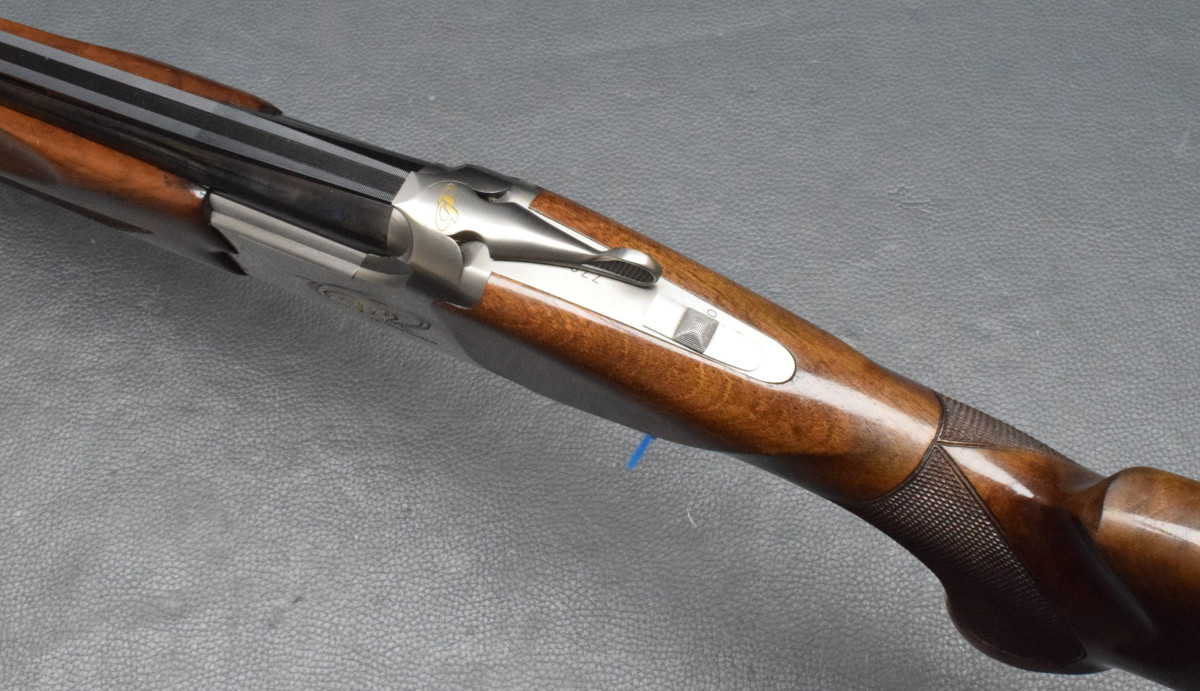 13 mm breite ventilierter Schiene, Perlkorn mit Hilfskorn, Ejektoren, vergoldeter Einabzug, heller Stahlsytemkasten mit Gravur, Sicherungsschieber/Umschalter auf dem Kolbenhals,