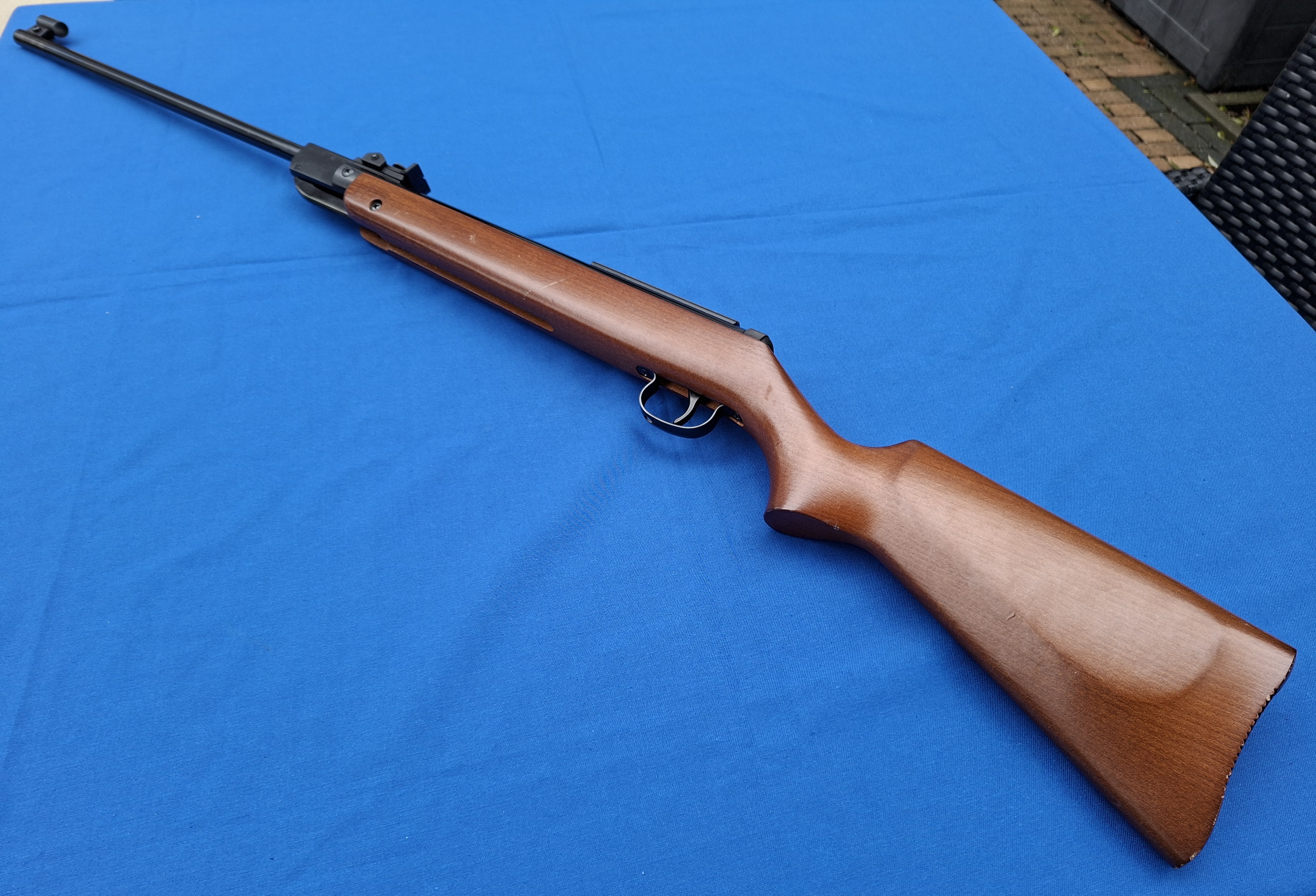 Sehr schönes Diana Modell 34, Kal.4,5. Baujahr 1992. F Zeichen. Komplett und original.Hat momentan ein Exportfeder verbaut, aber könnte auf Wünsch auch geliefert werden mit F-Feder.
