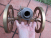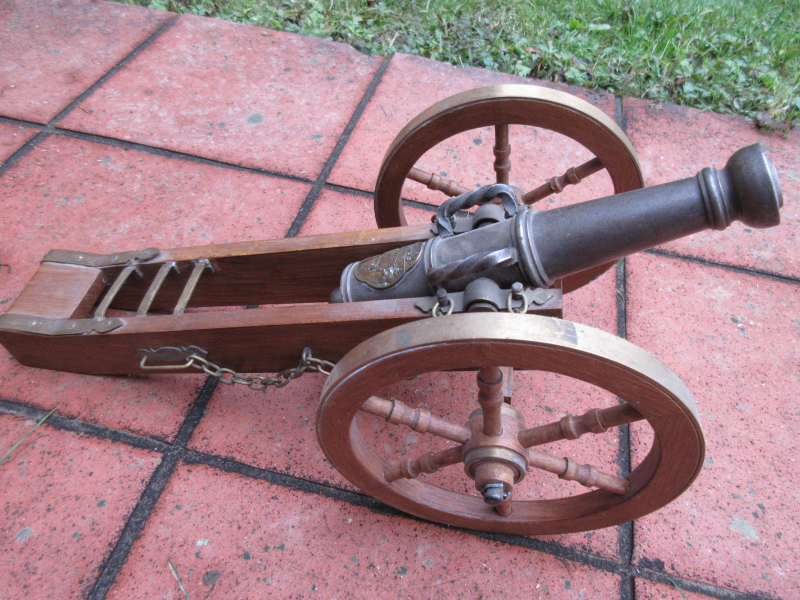 Lafette und Räder aus Eichenholz, teilweise Messingbeschlagen, Kanonenrohr aus massiven Eisen, inneres glatt. auf dem Rohr angebrachte Messingplakette mit Ansicht des Uhrturmes auf dem Schlossberg und Schrift : GRAZ UHRTURM, Länge 40 cm, Breite 17,5 cm, Höhe 16 cm, Gesamtgewicht ca. 2,5 Kg. Porto Österreich 12 Euro, EU Länder 24 Euro.