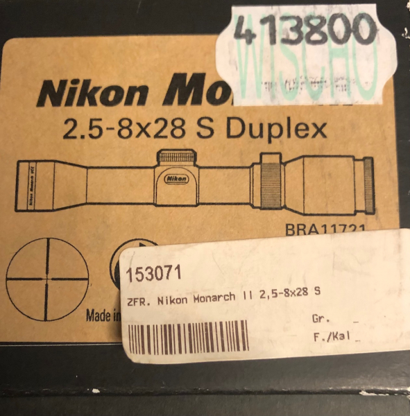 Hallo, Sie bieten hier auf ein Nikon Monarch II aus einem Nachlass. Das Zielfernrohr ist in einen sehr guten Zustand und war noch nie im Gebrauch. Viel Spaß beim bieten.