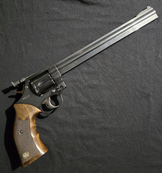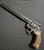 Ein Manurhin MR73 Silhouette, Kaliber .357 Magnum, mit dem langen 10 ¾ Zoll (273 mm) Lauf – eine Version, die ausschließlich für das sportliche Silhouettenschießen entwickelt wurde und heute nur noch schwer zu finden ist.