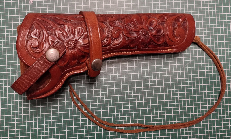 Holster von Viking, Mexiko, für Colt SAA bis 7,5 Zoll Lauflänge. Dickes Sattelleder. Handarbeit. Schöne florale Punzierungen. Alle Nähte in Ordnung.