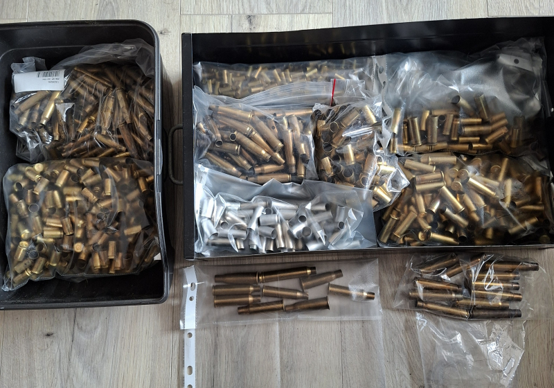 Sie bieten hier auf ein Konvolut an bereits verschossenen Hülsen von verschiedenen Herstellern. Mit bei sind viel 9×19,viel .223 rem., .45ACP, .22lr, viel .38special und .357mag, 8x57, .308win, .30m1, 4,6x30, 7,62x39, sowie ein Beutel Mischzeug und ein Beutel Misch-Aluhülsen.