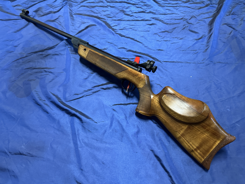 Aus großer Sammlungsaiflösung die Gelegenheit !Eines der besten,qualitativsten Modelle dieser Art,noch beste,damalige Güte&Qualität!Gesuchte Variante mit Tiroler Schaft in schöner,originaler Erhaltung und so sehr selten!Sammler und Kenner wissen hier Bescheid.Vermutlich 60 -er Jahre...Baut keinen Druck mehr auf,spannen und abschlagen geht einwandfrei,die Dichtung sollte wohl erneuert werden,für geschickte Hände mit etwas Zeit absolut kein Problem,danach hat man ein fantastisches Gewehr mit Stärke und Präzision!Damals gab es noch keine Joule Begrenzung bei solchen Modellen.In dieser Güte/Qualität wird leider nichts mehr gebaut,als sich dieses Exemplar sichern!Die Bilder als Beschreibung beachten.Von privat ab 1€ ohne Rücknahme.EU-Ausland Versandkosten 35€.