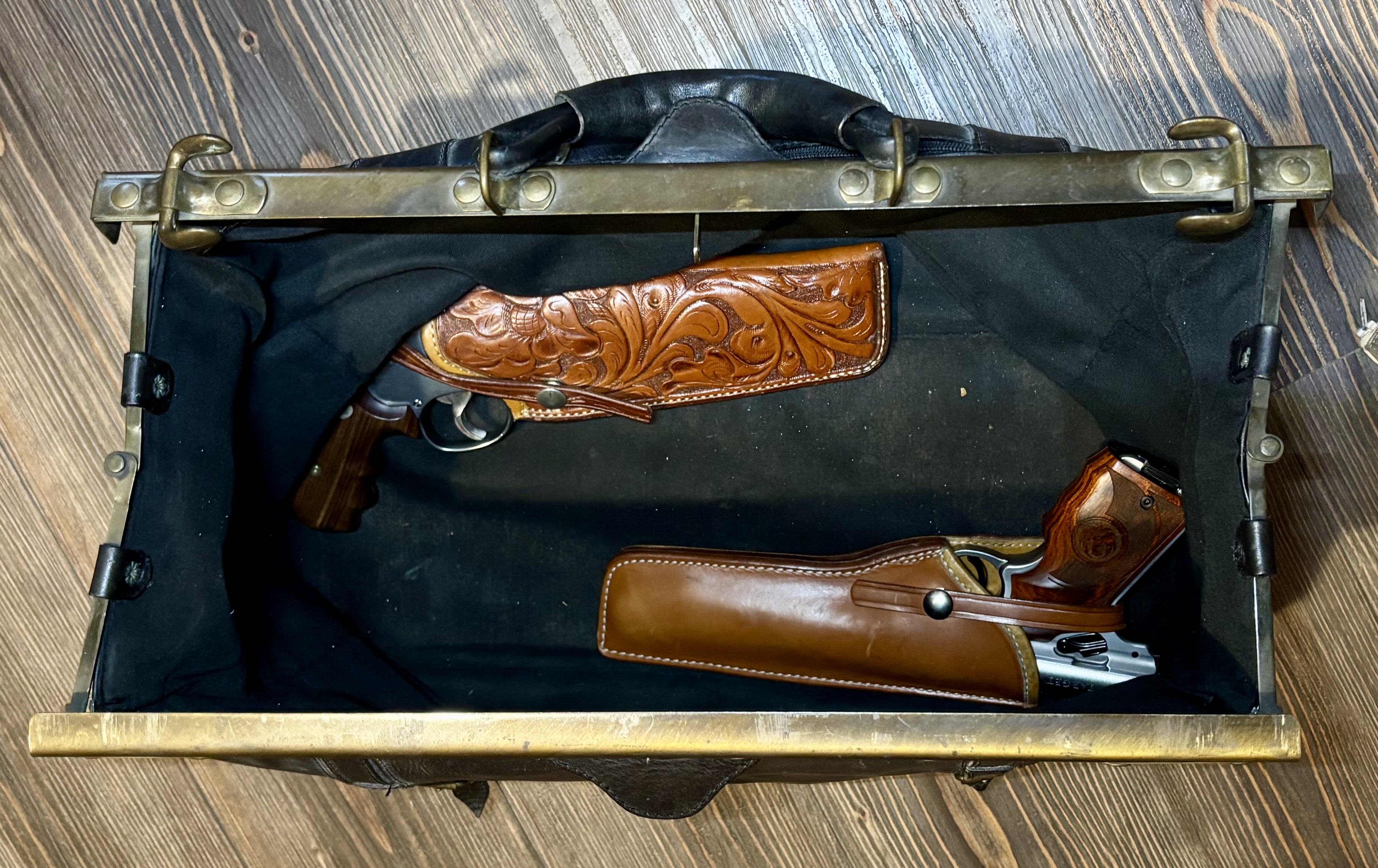 Super schwarze lederne Doktor Maulbügel Tasche , mit separatem Vorhänge Schloss ! Zwar benutzt , aber OHNE Risse , Löcher oder aufgerissene Nähte ! Auch das Tuch im inneren ist noch okay . Zwei zusätzliche kleine Reisverschluss Taschen , je eine innen und eine außen ! Weitere Fotos und andere Angebote auf Gunfinder.de Perfekt für Kurzwaffen und Zubehör ( abgebildete Waffen samt Holster sind nicht Gegenstand der Auktion ! ) Maße : Länge/Breite/Höhe : 46/20/29 cm ! Kleine Blessuren sind vorhanden und zu akzeptieren ! ………… ++++++ Zahlungen erwarte ich innerhalb von 5 Tagen ! Privatverkauf , daher keine Garantie , Rücknahme oder Gewährleistung nach dem neuartigen Sachmängel Gesetzt etc. !