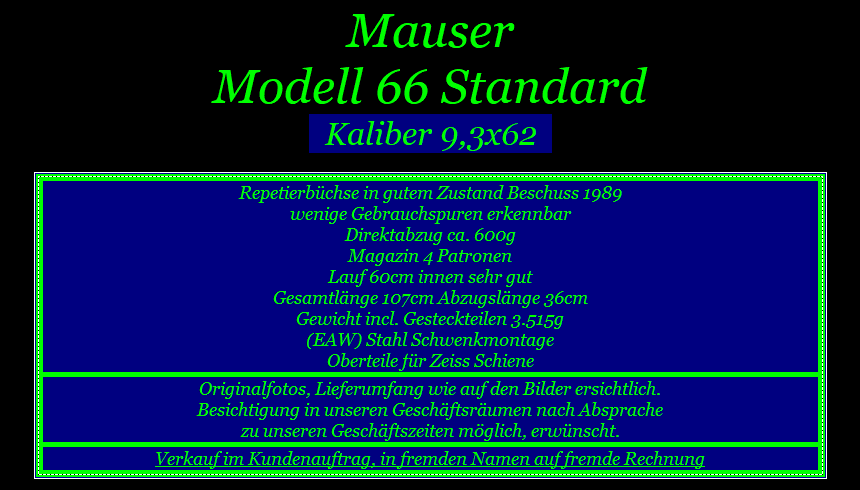 Mauser Kurzrepetierer Modell 66 Kaliber 9,3x62