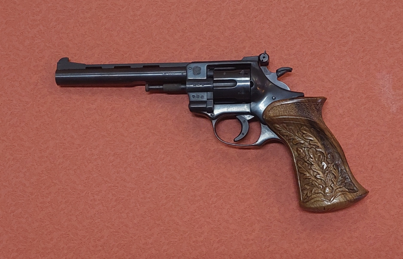 Revolver "Arminius" - Mod. HW9 / Kal.: .22lr / hat oberflächige Spuren, guter Gesamtzustand / Trommel mit 6 Kammern / Lauflänge 6" (152mm) / breiter Matchabzug / die Funktion ist einwandfrei gut / mit geschnitzten Holzgriffschalen /