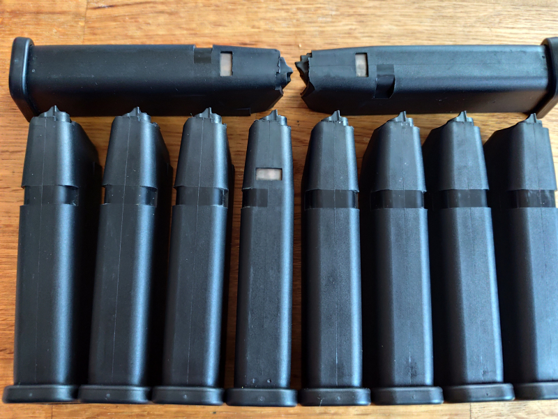 Ich verkaufe 10 neuwertige Magazine für Glock Pistolen im Kaliber 9mm Luger.