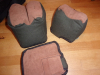 Sandsack/Gewehrauflage 3teilig in Tragesack, aus grünem Baumwollstoff mit Rauhlederapplikationen, Hersteller: Panther Way Waco Texas, USA