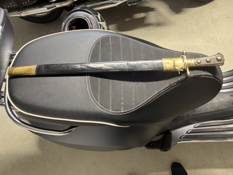 Weidmesser, Kantonale Ordonnanz 1838, für Scharfschützen KL 480mm, TL 510mm, gerade, einseitig geschliffene Klinge, runder Rücken. Parierstange aus Messing, nach aussen verdickt. Griffschalen aus Horn mit drei Messingnieten befestigt. Schwarze LederscheIDE