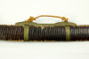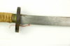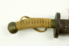 Säbel, China, um 1900, Qing Dynastie, wohl Beutestück aus dem Boxeraufstand, Eisengefäß, Holzgriffstück mit Schnurwicklung, Bronzeabschluss, leicht geschwungene Klinge mit drei Hohlschliffen und gravierten Drachen, bemalte Holzscheide mit Bronzeverzierungen, Tragespuren, L: 99 cm.