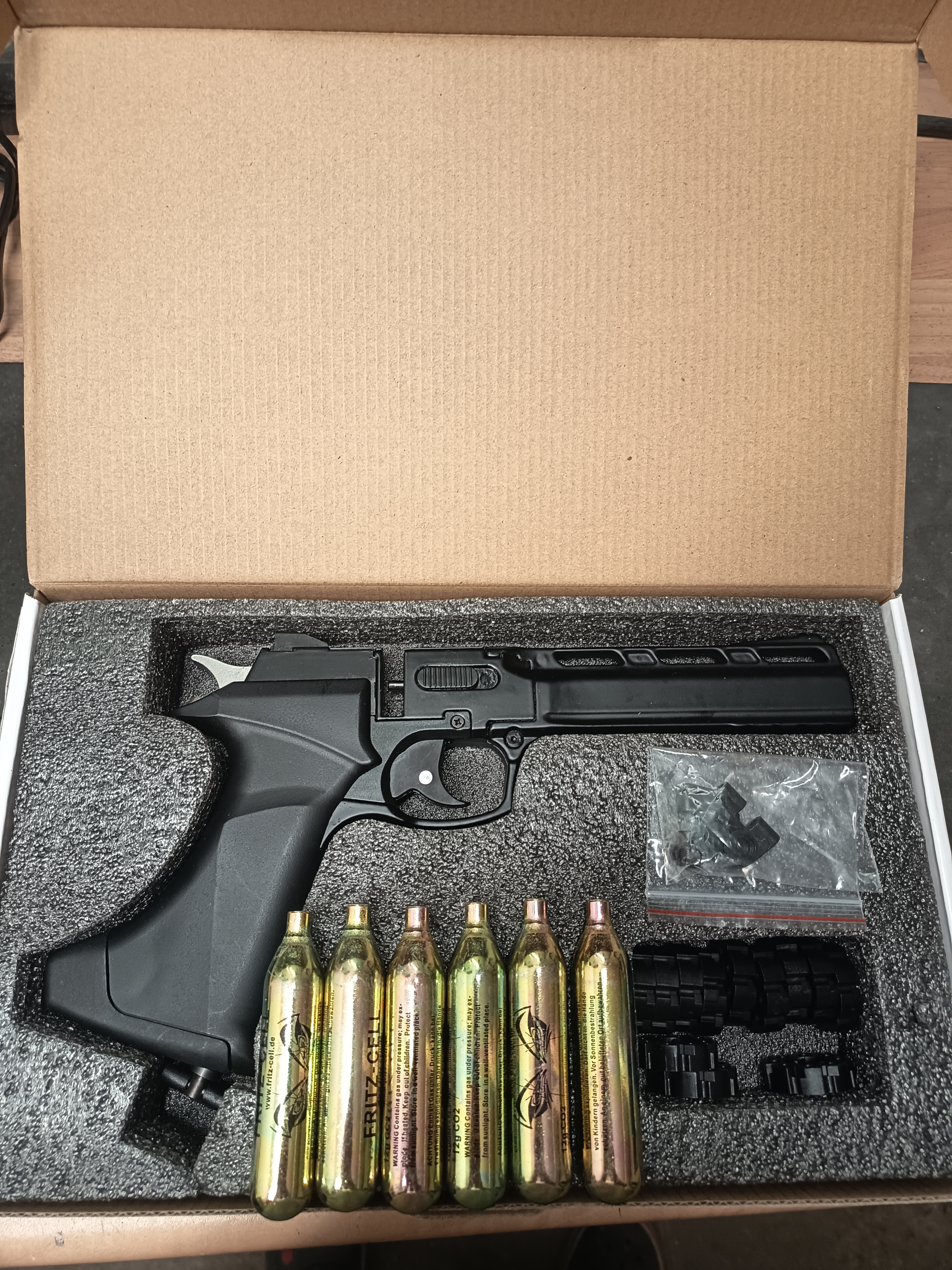 Biete hier eine Schöne AirmaX CP400 im Kal. 4,5 mm Diabolo an, im Lieferumfang sind 12 Magazine und 6 CO2 Kapsel sowie die Bedienungsanleitung und die OVP