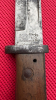 Preußisches Bajonett M 1884/98 n.A., Hersteller: Möve-Werke Walter & Co. Mühlhausen in Thüringen, Klingenrücken: W15, Klinge mit eckigen Hohlkehlen, Holzgriffschalen und rundem Reinigungsloch, Druckknopf gängig, Seltenes Bajonett