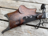 Die unrestaurierte Waffe hat einen prächtig gemaserten Schaft ohne jegliche Risse oder Ausbrüche. Am Hinterschaft befindet sich eine großflächige und aufwendig geschnittene Fischhaut, der Vorderschaft ist glatt.