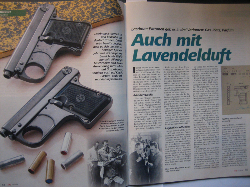 Das Heft für Waffenfreunde und Sammler +++ angeboten wird ein DWJ - Heft mit besonders sehr interessanten und seltenen Beitrag ++ ** Lacriame-Pistolen ** ++ Bei dieser Pistole handelt es sich um eine seltene Gaspistole. Die in den 1930er Jahren entwickelte Waffe verschoß nicht nur Gaspatronen, sondern auch Knall-, Parfüm- Farbmakierungspatronen.++ In dem Bericht (6 Seiten) können Sie weitere Einzelheiten nachlesen. Für Freunde eine kleine Hommage dieser Pistole. +++ und es gibt noch weitere interessante Beiträge z.B. für Freunde des Webley Revolvers - ** Wiederbelebt - Umbau ermöglicht kostengünstiges Schießen mit Webley Mark VI +++ Das Heft ist gebraucht ; befindet sich aber in einem sehr guten Zustand. +++ Der Versand erfolgt als Großbrief mit DHL (unversichert) ; die Versandkosten gelten nur für Deutschland.+++ Bieter aus dem Ausland bitte Versandkosten vor Gebot erfragen. +++ Versandrabatt möglich, sehen Sie auch meine anderen Angebote. +++ Privatverkauf, daher keine Gewährleistung, Garantie oder Rücknahme. 10-2004 +++ Fragen bitte mailen.