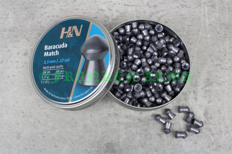 Mit einem Gewicht von 1,37 g ist die Baracuda Match 5,52mm eine schwere, hochpräzise Kugel ,die für weite Distanzen geeignet ist.