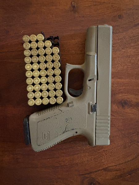ich verkaufe meine Glock 19. Sie hat Gebrauchsspuren, da der spezielle Keramiklack (Cerakote) leicht Kratzer annimmt. Ich hatte die Waffe immer bei der SW-Jagd dabei aber zum Glück nie benutzen müssen. Dementsprechend wurde Sie ziemlich wenig geschossen. Dabei ist die abgebildete Munition, hier wäre aber wahrscheinlich die Abholung am sinnvollsten oder eventuelle Mehrkosten für den Versand wären zu tragen.