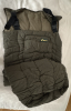 Obermaterial aus Loden, Innenfutter aus Kettgewirk, Nylon Schultergurte mit Steckschnallen zur Anpassung an die Körpergröße, seitlicher 2-Wege-Reißverschluss, aufgesetzter Muff mit 2 großen Eingriffen für warme Hände.