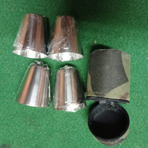 Biete 4 Schnapsstamperl aus Edelstahl mit Behälter. Die Versandkosten außerhalb der BRD können abweichen. Privatverkauf, deshalb keine Garantie oder Rücknahme.