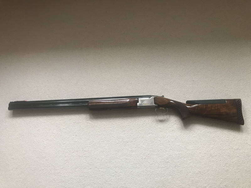Lauflänge 760mm; Schaftläng 380mm; Rechtsschaft; grünes Truglow Korn mit Hilfskorn; goldener Abzug in Position verstellbar; oben 8/8(*) Choke, unten 7/8 (*+) Choke; Bj. ca. 2002