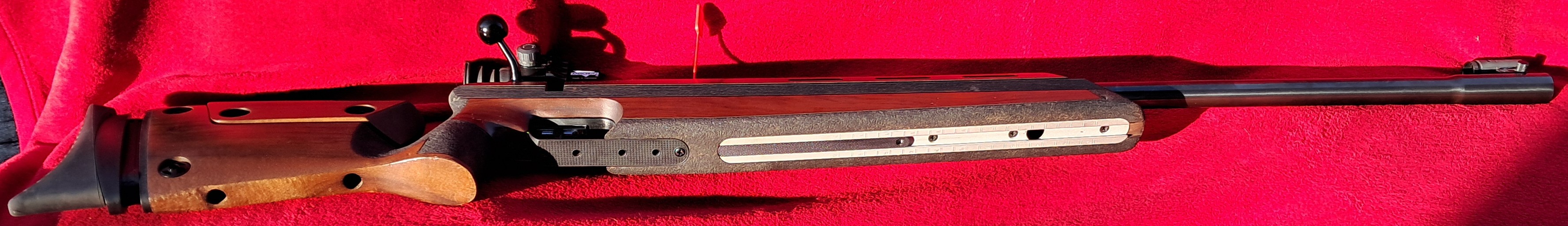 Schöner Nussbaum-Rechtsschaft mit verstellbarer Schaftbacke und -Kappe sowie schwerer Matchlauf – ideal zum Auflageschießen!
