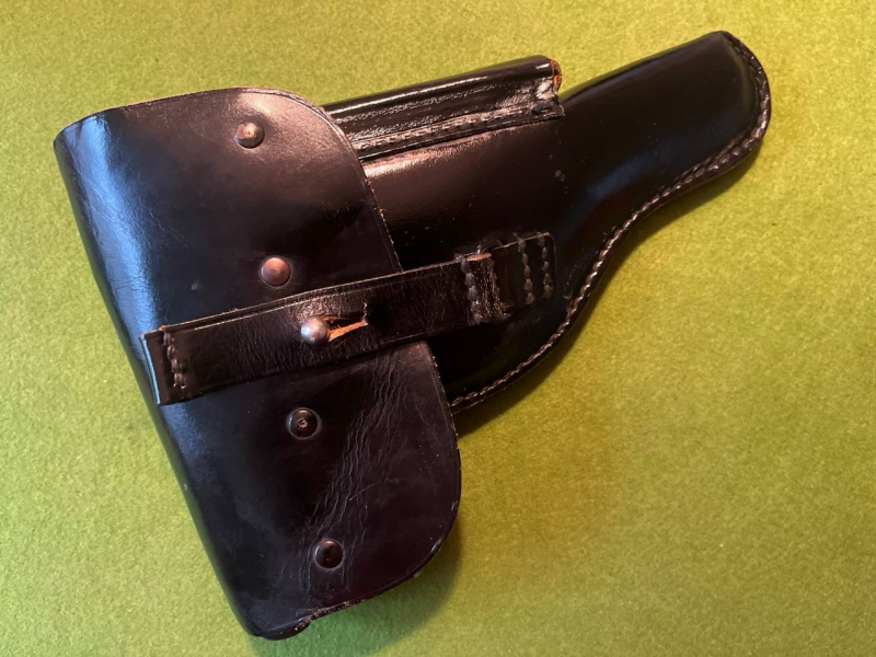 Das Holster ist bekannt, an sich nicht selten, etwas seltener ist der Zustand und dass der originale Knopf magnetisch ist, also keine Alu- Fertigung sondern Stahl. Es kann interessant für eine Vitrine sein, besonders wenn man die richtige Waffe oder ein vernünftig gefertigtes Modell auch hat.
