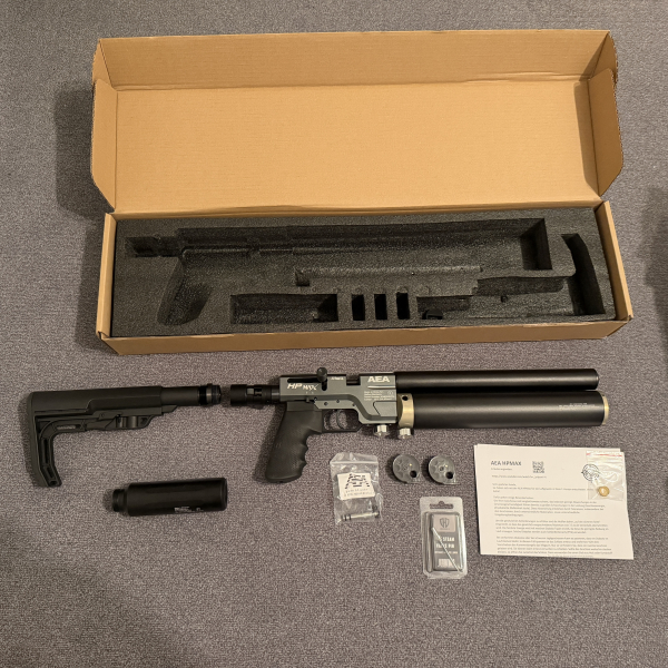 Ich biete hier eine absolut neuwertige AEA Hp Max an. Das Luftgewehr befindet sich im Auslieferungszustand und wurde nie verändert. Das Exportkit und eine Edelstahl Düsennadel liegen bei. Des Weiteren sind noch zwei Magazine und der originale Schalldämpfer im Lieferumfang enthalten. Frei verkäuflich ab 18 Jahren, der Altersnachweis ist zu erbringen. Versand erfolgt ausschließlich innerhalb Deutschlands. Es handelt sich um einen Privatverkauf, daher keine Garantie, Gewährleistung oder Rücknahme. Bei Fragen einfach melden.