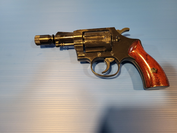 Sie bieten auf einen Revolver Uma Lady, cal. 9mm, 6 Schuss Trommel mit leichten Gebrauchsspuren, Rötliche Holzgriffschalen absolut unbeschädigt.