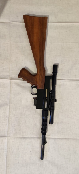 Landmann KK Selbstlader, Kal. 22 l.r. (lfB) mit Gebrauchsanleitung. Die Waffe ist ein absoluter Klassiker. Sammlerstück in sehr gutem Zustand, mit 5-Schuss Magazin und Zielfernrohr Anschütz 4x, Gesamtlänge 69 cm.