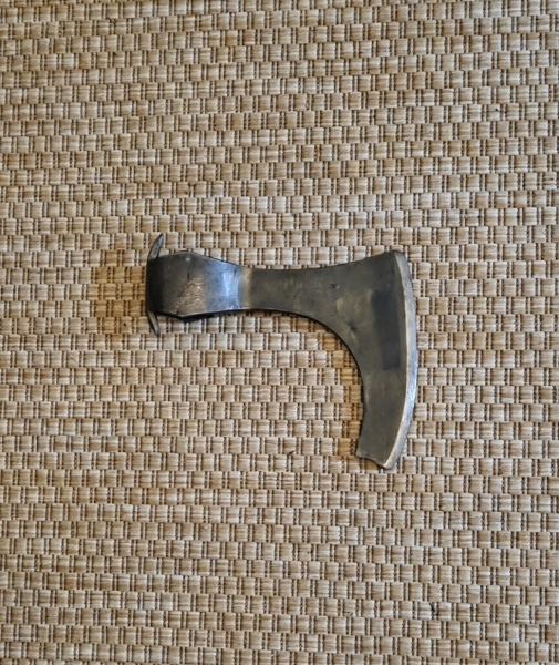 Eine exakte Nachbildung eines Axtkopfs aus der Kiewer Rus. Der Axtkopf ist handgeschmiedet und stumpf.