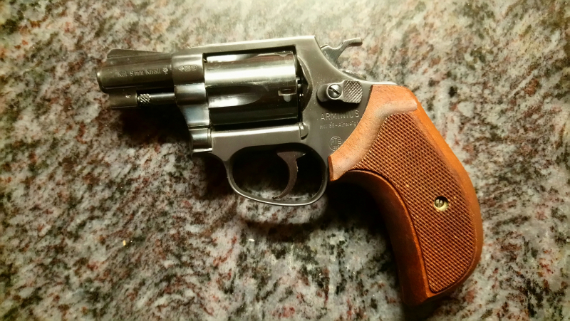 HolzGriff für Smith & Wesson J Rahmen Round Butt aus Sammlung .Hier zur Ansicht auf einem HW88 montiert.