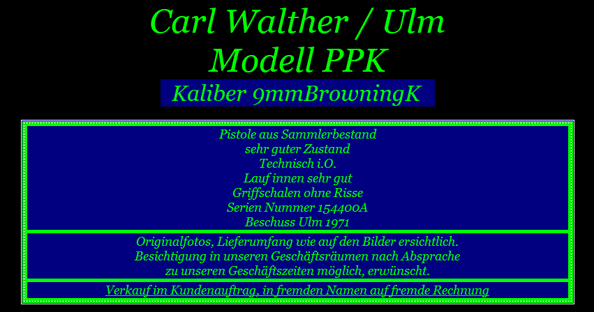 Versand ins Ausland möglich, anfallende Kosten & Gebühren trägt Käufer. Anbieter dieser Auktion: Waffen Lachenmaier GbR, Entengasse 5, 76275 Ettlingen