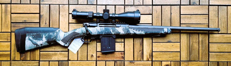 Neue Geradzug-Repetierbüchse des Herstellers Savage, das Model Impulse Predator im Kaliber .308 Win. mit passenden Montageringen (Stahlringe) und einem bereits montierten Zielfernrohr der Marke AKAH mit einer Vergrößerung von 2,5-10 x 50 Absehen 4 Beleuchtet, dazu passend erhalten ein Futteral , (ohne Abbildung) .