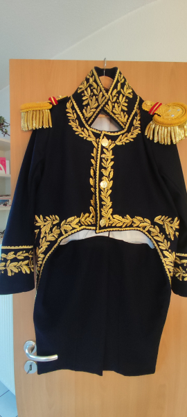 Zum Verkauf steht hier eine Uniform eines Divisions General mit den dazugehörigen 3 Sterne Epauletten dem 1 Empire Kaiserreichs Napoleon Bonaparte diese ist Neu also noch nie getragen , wurde auf Bestellung geschneidert anfang des Jahres gekauft sehr aufwendig in der Arbeit , wie auf den Bildern zusehen ist diese mit sehr aufwendigen Stickereien , Napoleon/Adler Knöpfen verziert. Alleine schon die Stickereien sind schon sehr aufwendig. Die Uniform enthält den Stoff der Wolle und die Größe beträgt ca XL und wird natürlich uch pfleglich versendet. Wenn Fragen , sehr gerne würde natürlich umgehend beantwortet werden.