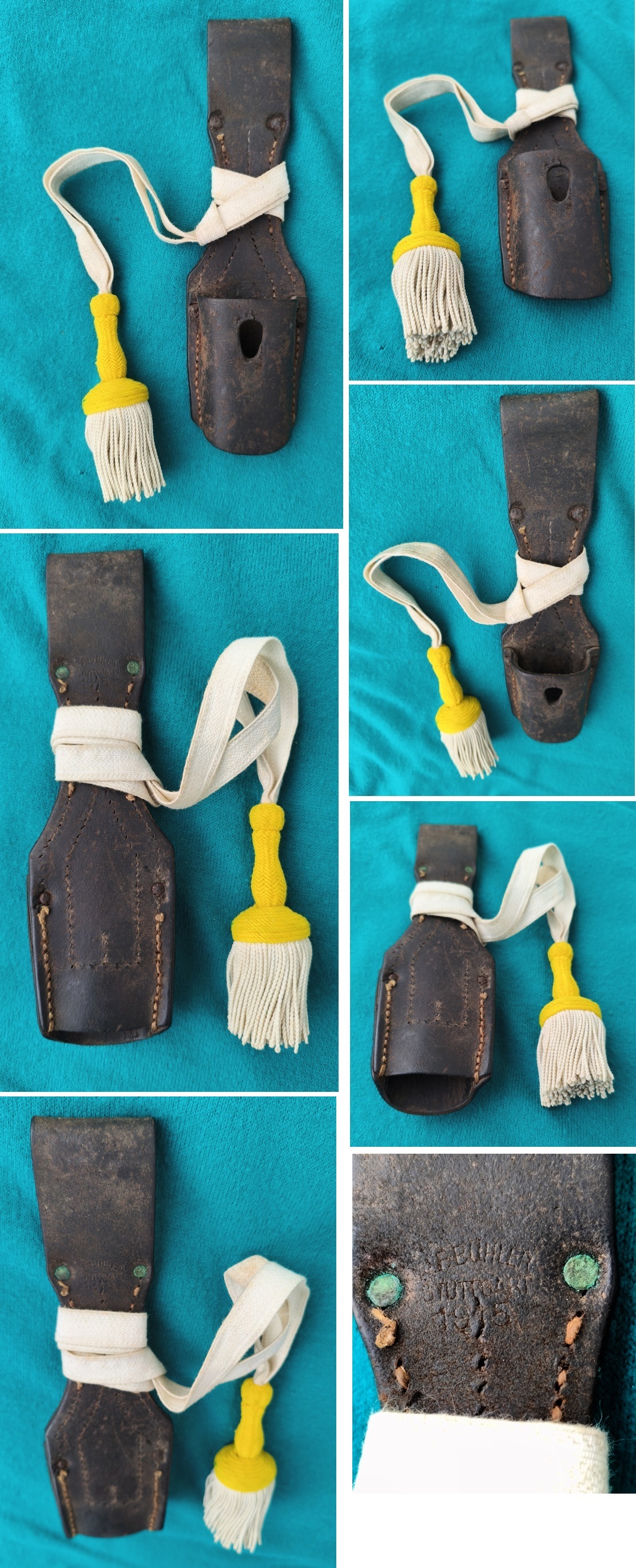 Alter Koppelschuh 98-05 für Lederscheide, gebundene Toddel, gelb weiß. 1915