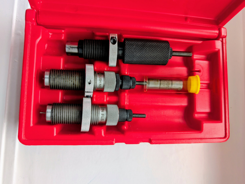 Sie bieten auf einen Forster Benchrest Matrizen Satz inkl. einer Bushing Bump Neck Sizing Matrize mit 3 gängigen Bushings.