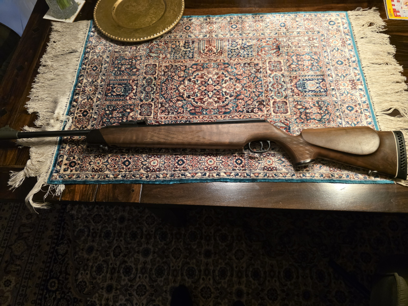 Ich wollte das Luftgewehr reinigen und habe dafür zerlegt es stand schon 30 Jahre lang bei mir im Kleiderschrank. Die Waffe hat eine 7,5 Joule Feder mit einem F Zeichen.