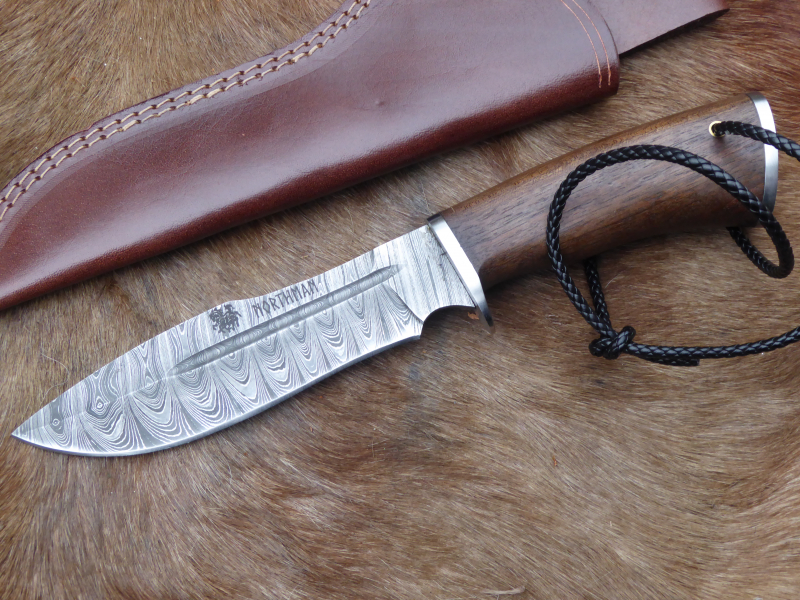 Das Jagdmesser der Marke NORTHMAN ist aus Kohlenstoff-/Nickel Edel-Damast Stahl geschmiedet. Der Ausgangsstahl Block hatte 256 Lagen.