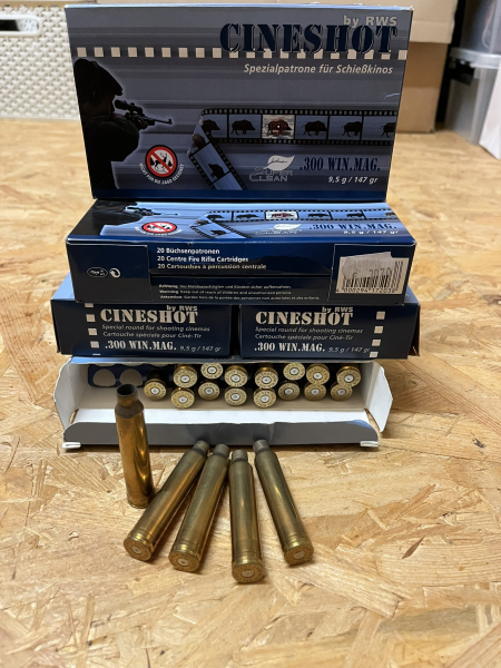 Ich versteigere 100 Cineshot Hülsen von RWS imCal.300WIN MAG die im Schiesskino 1x aus meiner Blaser BDB abgefeuert wurden. In 5 20er (geöffneten)Original Verpackungen.
