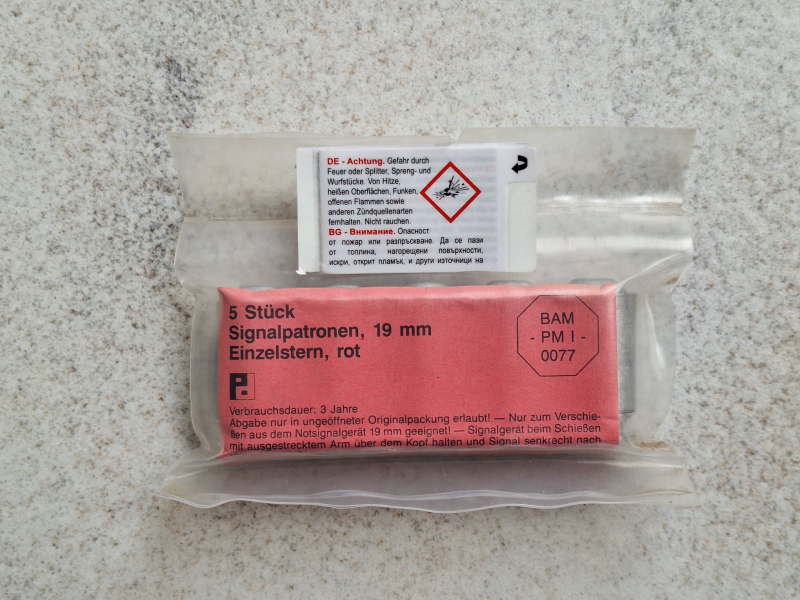 Sie bieten auf 5 Signalpatronen für das Heckler und Koch (HK) Notsignalgerät (NSG) FHK 19 im Kaliber 19 mm x 36, welches auch als Kaliber 6 bezeichnet wird; Einzelstern rot. Die Patronen befinden sich in der noch versiegelten Original-Verpackung. Da die vom Hersteller empfohlene Verbrauchsdauer von 3 Jahren nach Herstellung bereits seit vielen Jahren abgelaufen ist, übernehme ich keinerlei Garantie oder Gewährleistung für die ordnungsgemäße Funktion der Signalpatronen ! Bitte bedenken Sie dies unbedingt, bevor Sie ein Gebot abgeben. Funktionsbedingte Beeinträchtigungen irgendwelcher Art habe ich allerdings bislang auch bei ähnlich alter Signalmunition noch nicht erlebt. ALTERSNACHWEIS ERFORDERLICH, d.h. Erwerb nur durch Personen möglich, die das 18. Lebensjahr vollendet haben und die dies durch Übersendung einer Kopie/eines Scans von Vorder- und Rückseite ihres Personalausweises nachweisen (entfällt bei ID-Mitgliedern). Bitte beachten Sie auch die gesetzlichen Vorschriften bei dem Abschuss von Signalmunition. Versand nur innerhalb Deutschlands, kein Export, auch nicht in andere EU-Länder. KEINE ABHOLUNG MÖGLICH. Da es sich um einen Privatverkauf handelt, der keinen gewerblichen Hintergrund hat, ist jede Garantie oder Gewährleistung ausdrücklich ausgeschlossen; ebenso ist eine Rücknahme der Ware nicht möglich oder mit anderen Worten: DER VERKAUF ERFOLGT UNTER DEM AUSSCHLUSS JEGLICHER SACHMÄNGELHAFTUNG. Mit der Abgabe eines Gebotes akzeptieren Sie diese Bedingungen; bitte bieten Sie also nicht, wenn Sie mit den vorgenannten Bedingungen nicht einverstanden sind. MyGun ist Bestandteil dieser Auktion.