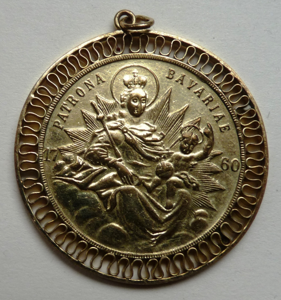 Vorderseite: Maria mit Jesuskind in Strahlenkranz und Umschrift PATRONA BAVARIAE