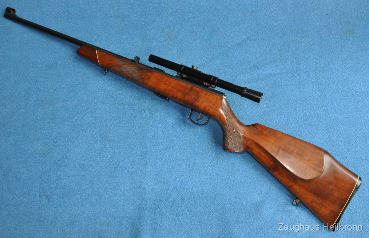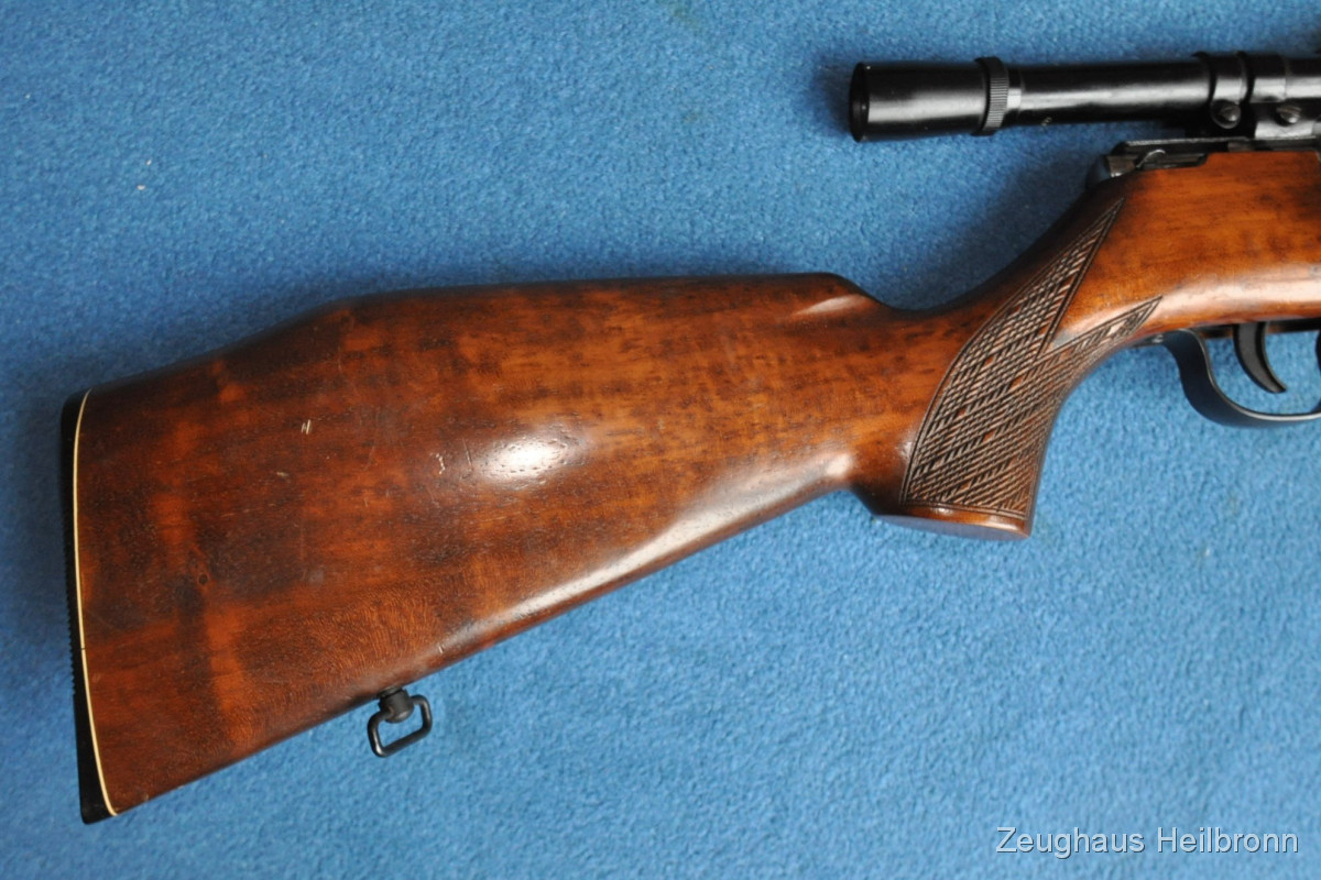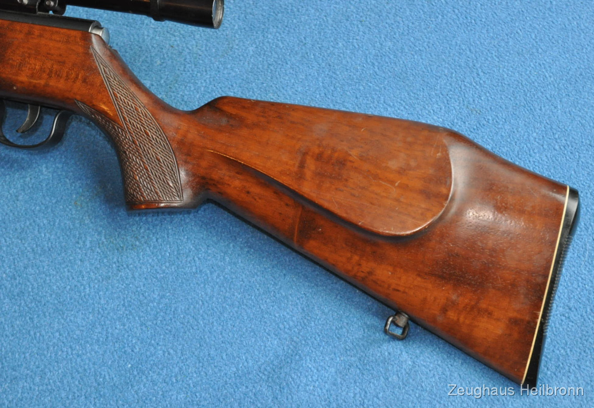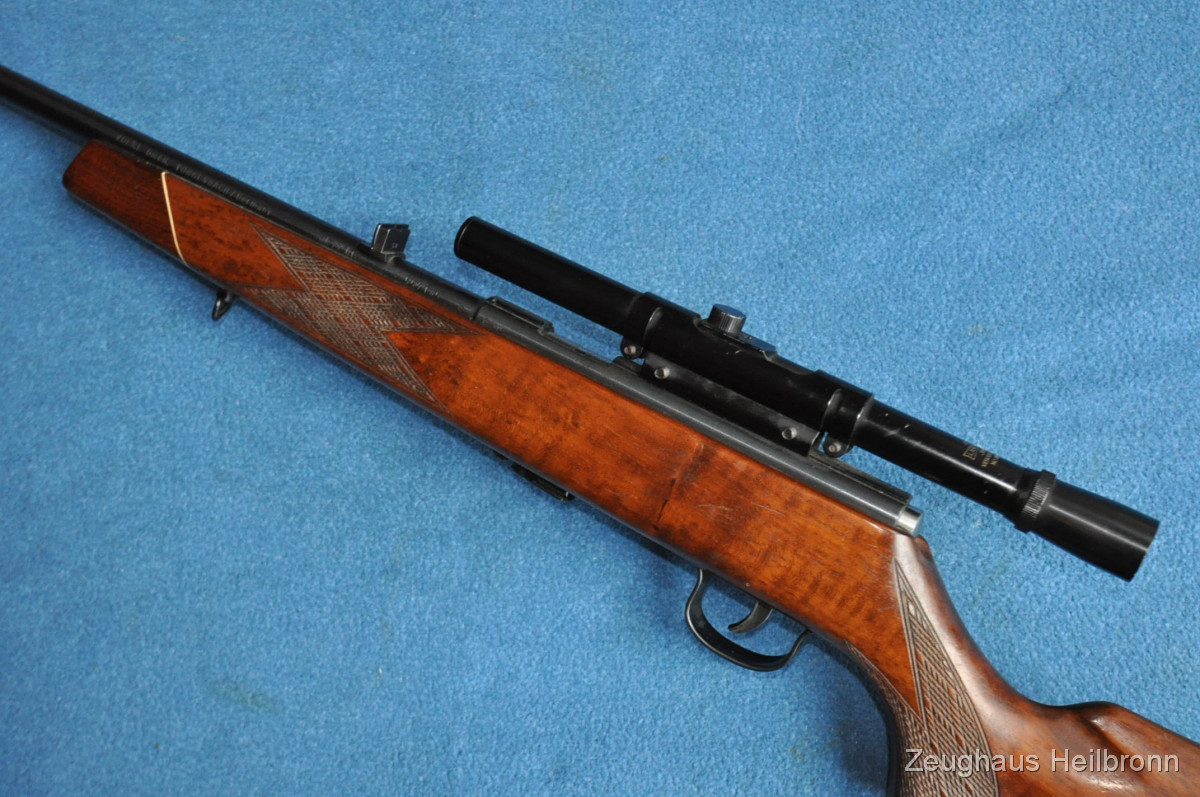 Waffe ist in einem schönen Zustand mit leichten Gebrauchsspuren, siehe Bilder, volle Funktion, Lauf blank. Mit jagdlichem Schaft, ZF Linsfeld 4x15