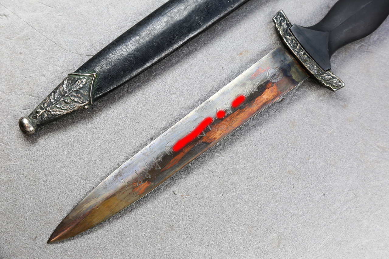(Herstellerkürzel für E.&F. Hörster, Solingen). Der Dolch trägt eine Widmung