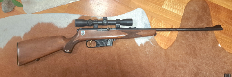 Voere SLB mit Optik HJB 3-9x32 Abs.6, Kaliber 22 lr. mit einem 10 Schuss Magazin, Backe, Pistolengriff, Lauf und System haben Rost, aus Nachlass, Zustand siehe bitte auch Bilder.
