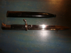 Aus meiner Schatzkiste biete ich an: Ein SG KS 98 in gutem Zustand, Griffschalen perfekt, keinerlei Abplatzungen, roter Filz anbei. Klinge topp, nicht beschliffen, auf der Fehlschärfe das PUMA-Zeichen geschlagen, darunter Solingen. Das Stossleder auch original. Die ungeöffnete Scheide mit Originallack, leichte Tragespuren vom Lederkoppelschuh, der leider nicht dabei, dieser war vom Kater zerbissen worden.
