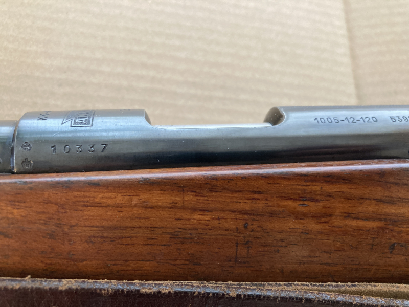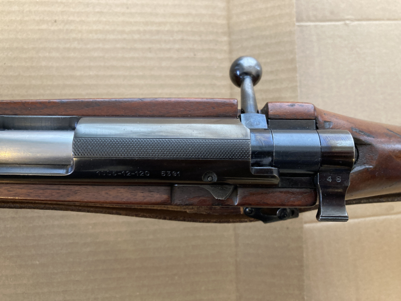Das Gewehr hat einen CIP N neubeschuss, der recht gut versteckt angebracht ist. Damit legal für Sammler und Sportschützen erwerbbar.
