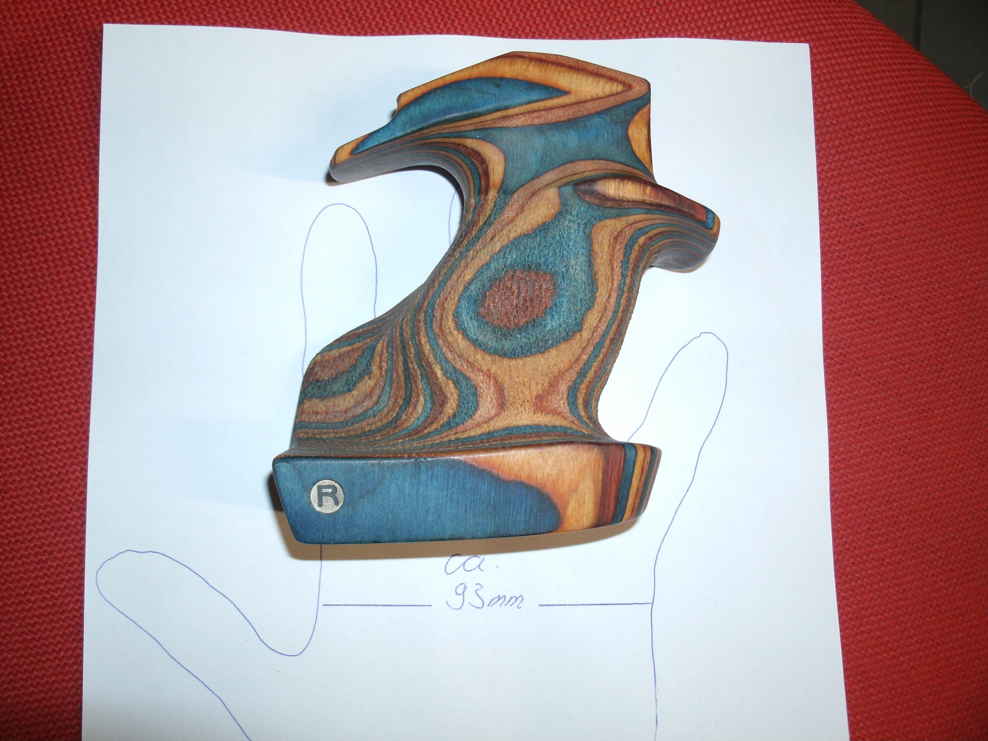 Verkaufe einen sehr schönen Rechtsgriff der Marke Rink für eine Steyr LP10 mit Schraube. Nach meiner Messung dürfte es sich um die Größe L handeln (s. Bild).