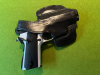 ermögliche ein sehr bequem und diskretes tragen; Inhalt, eine SSW- Ausführung der CZ 75 erster Serie, wofür das Holster aber eine Anpassung benötigen würde, da die Verengung an der Mündung verhindert, dass der Abzugsbügel richtig einrastet. Ähnliches gilt für Berettas der '90- Serie